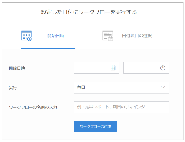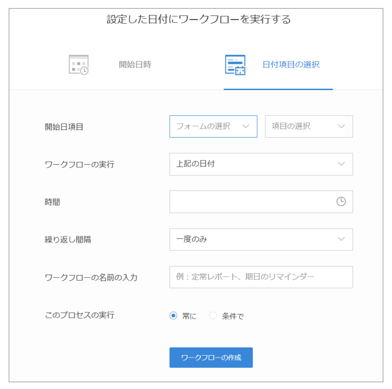 フォーム内の日付項目に基づいてワークフローを実行します。