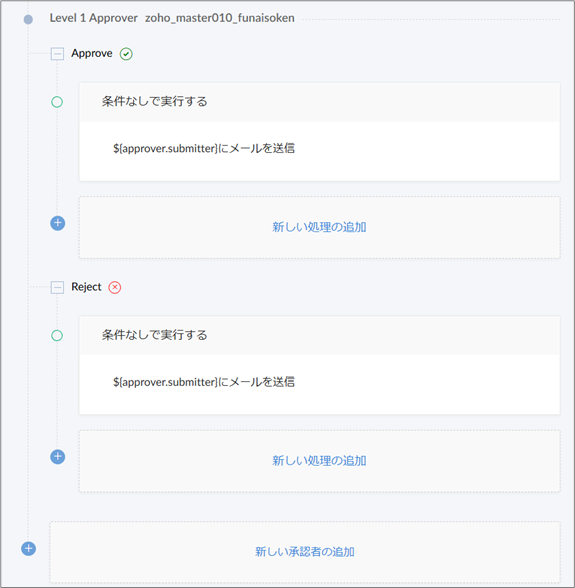さらに、承認または却下時に実行するアクションも設定可能です。
