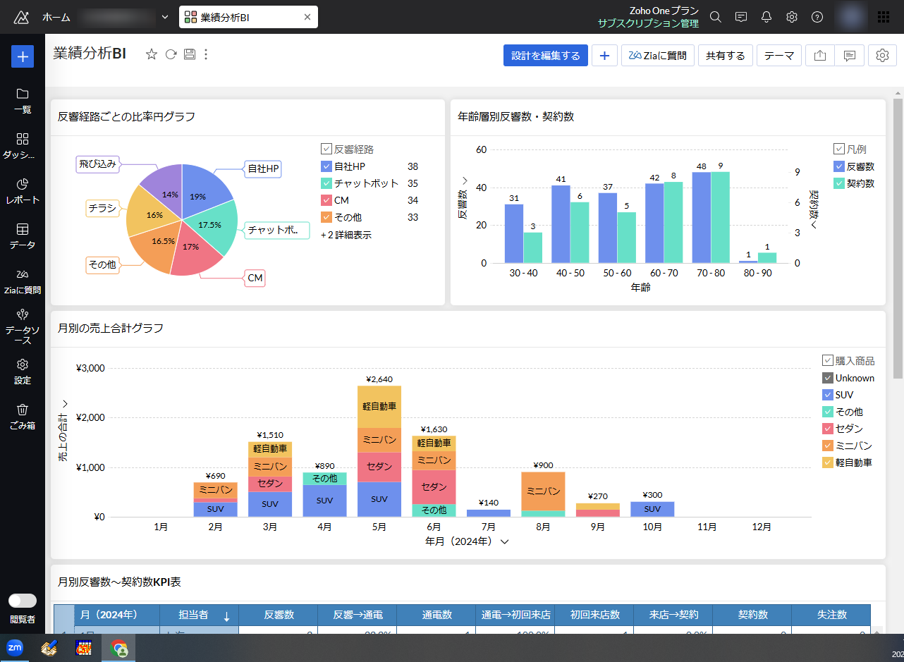 Zoho Analyticsとは、ビッグデータを集約して分析し、グラフや表などで可視化できる、Zoho社のアプリです。