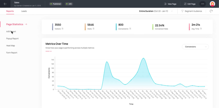 ランディングページを複製して、複数のバージョンをテストすることができます。